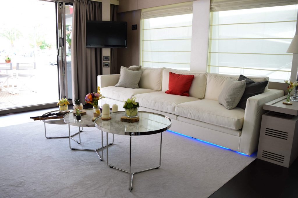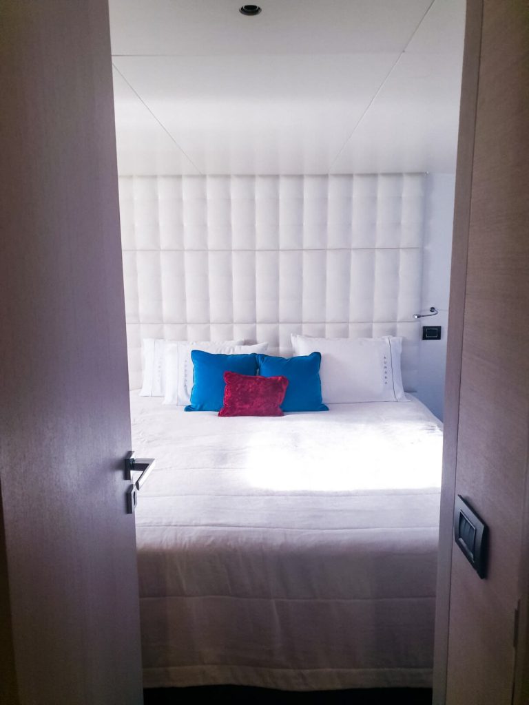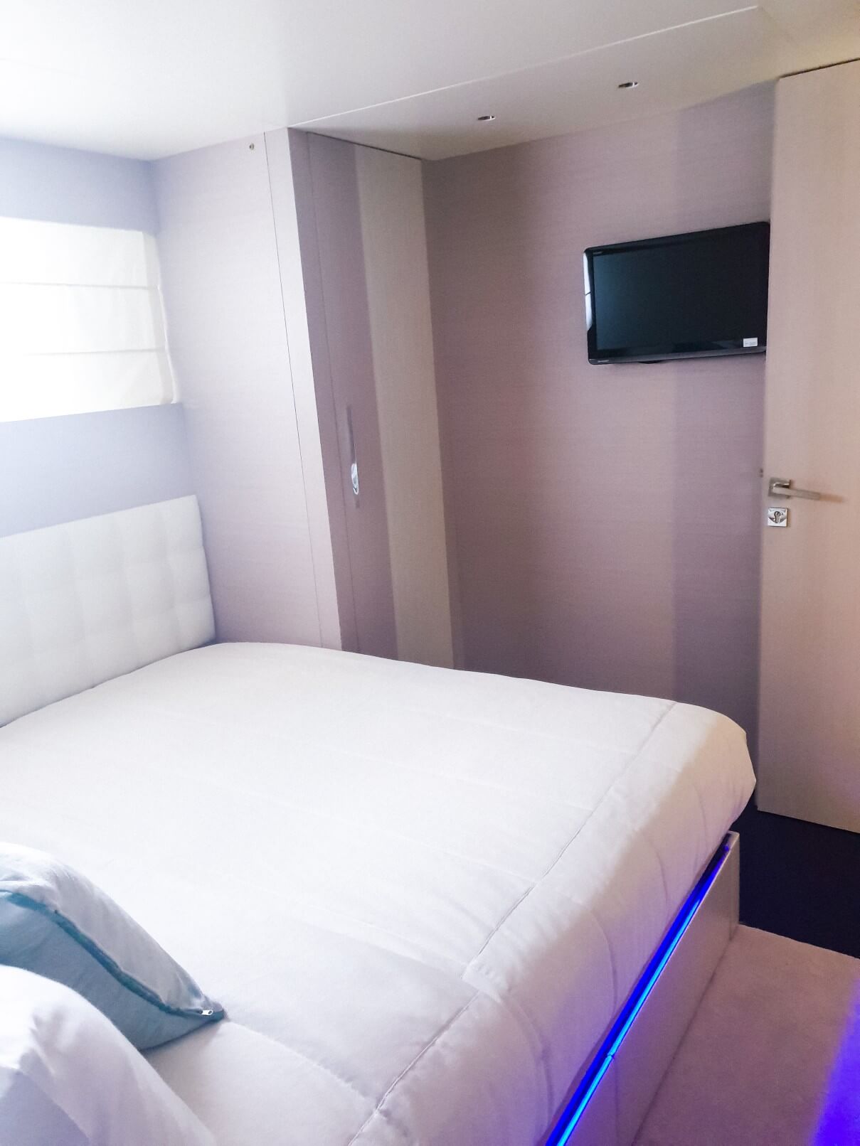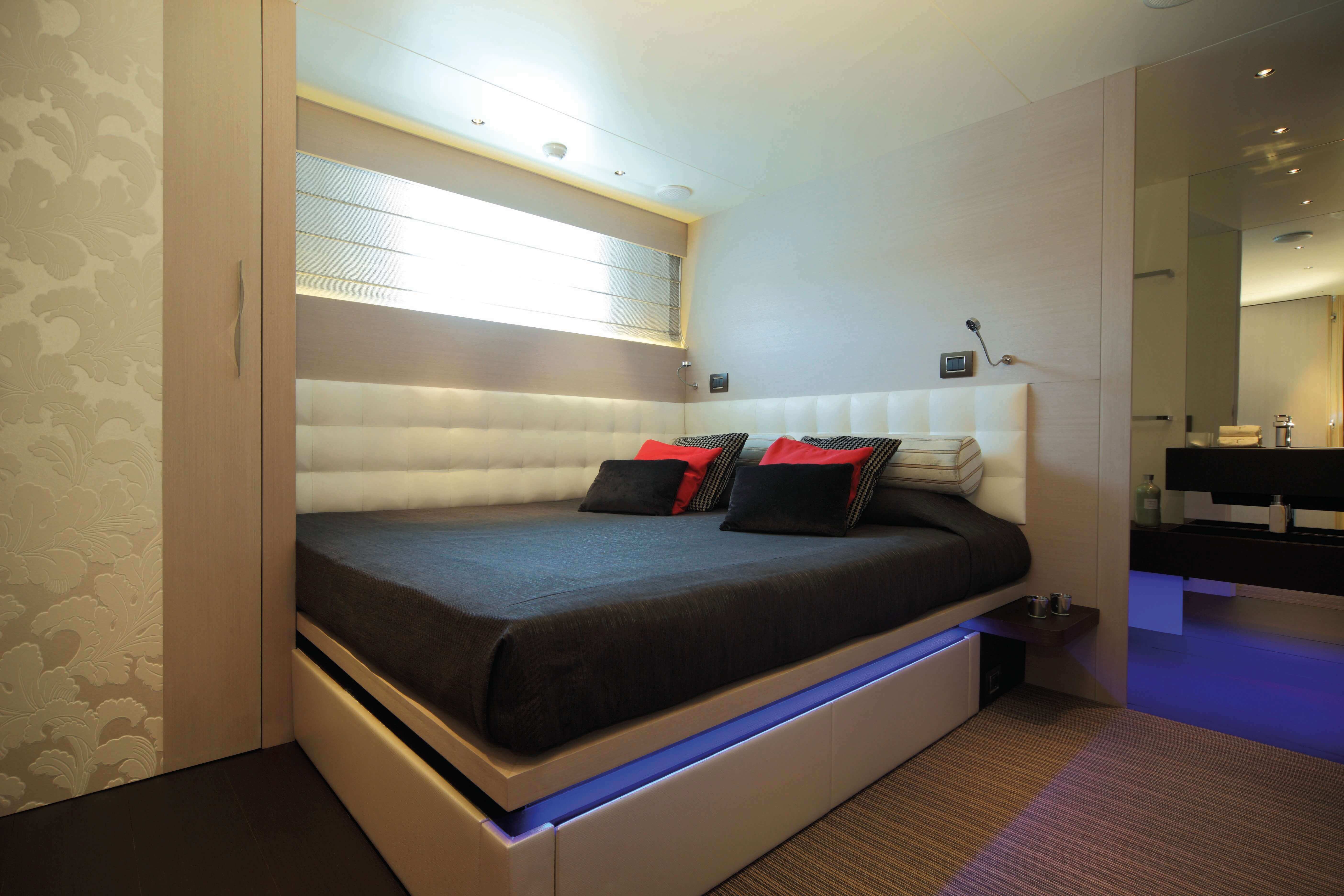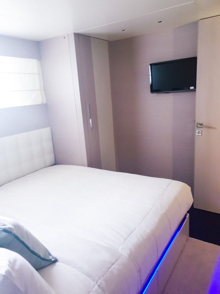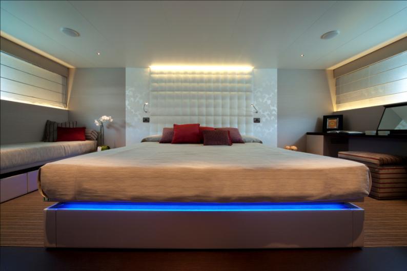 The 5 cabins on the lower deck include the full beam master suite, 2 doubles and 2 twins, which can be converted in doubles, and can be accessed through the main staircase.