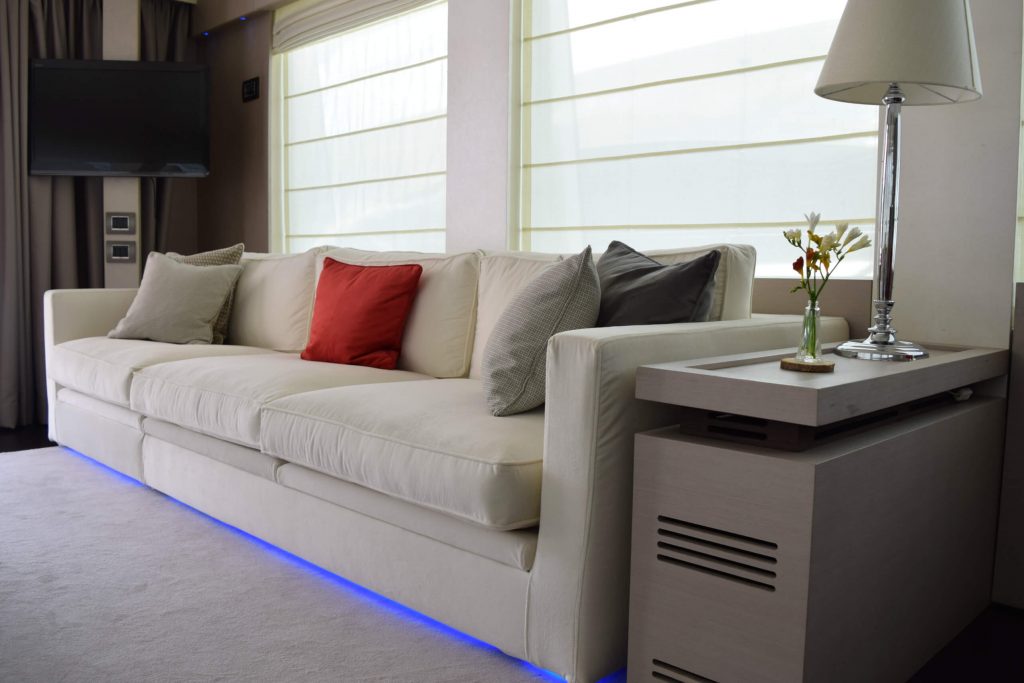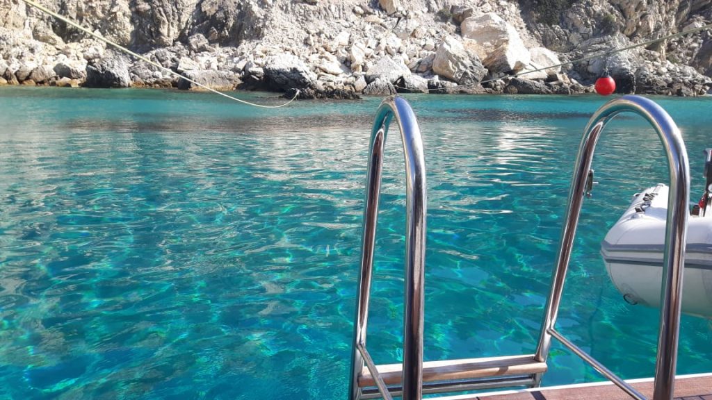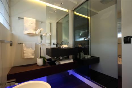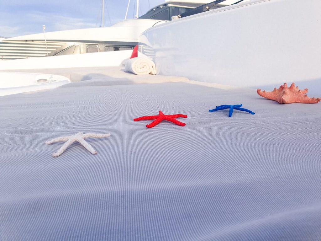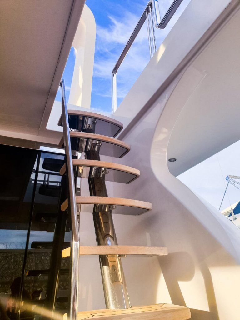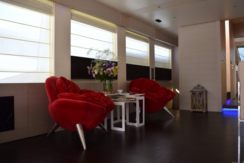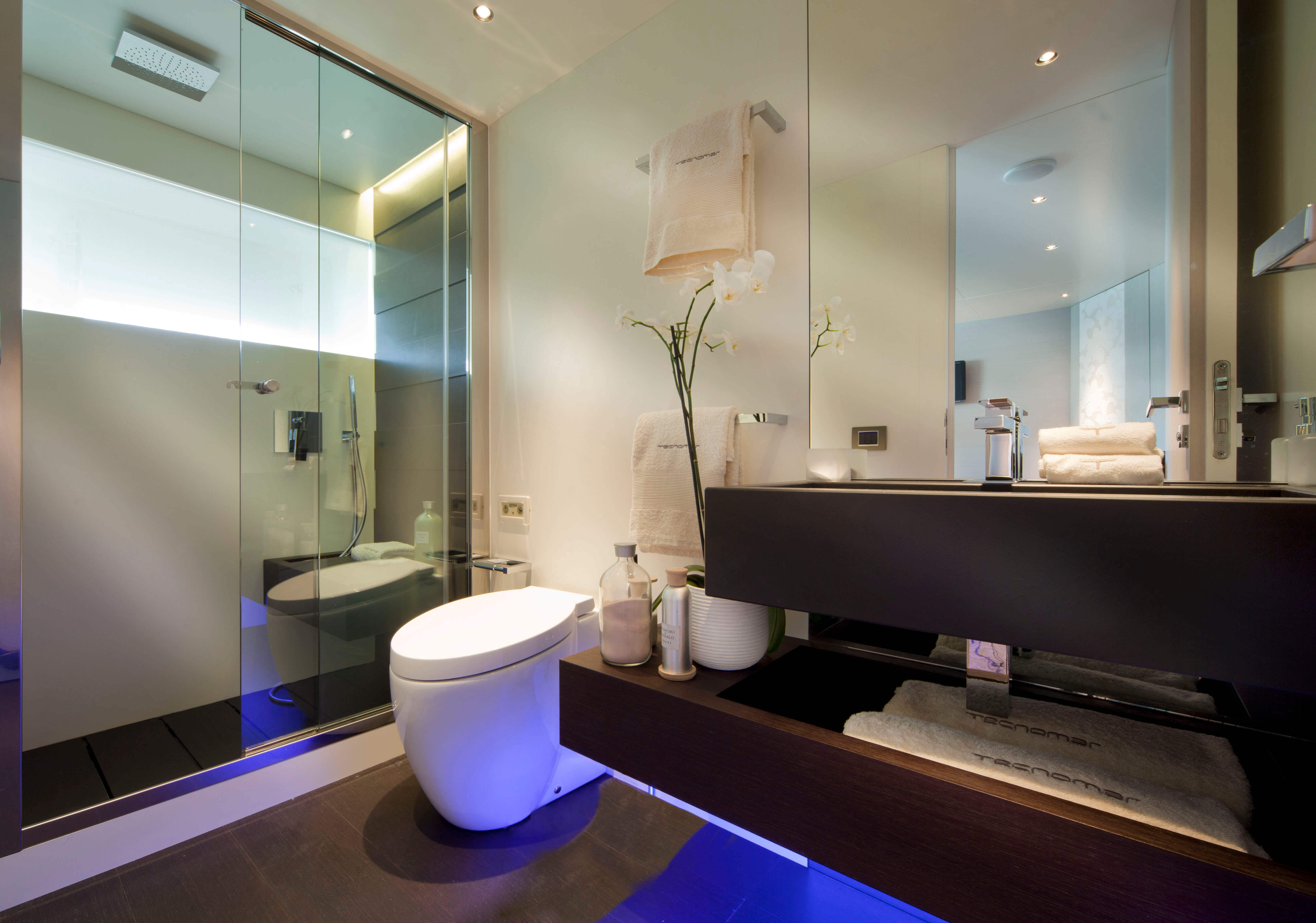 The 5 cabins on the lower deck include the full beam master suite, 2 doubles and 2 twins, which can be converted in doubles, and can be accessed through the main staircase.
