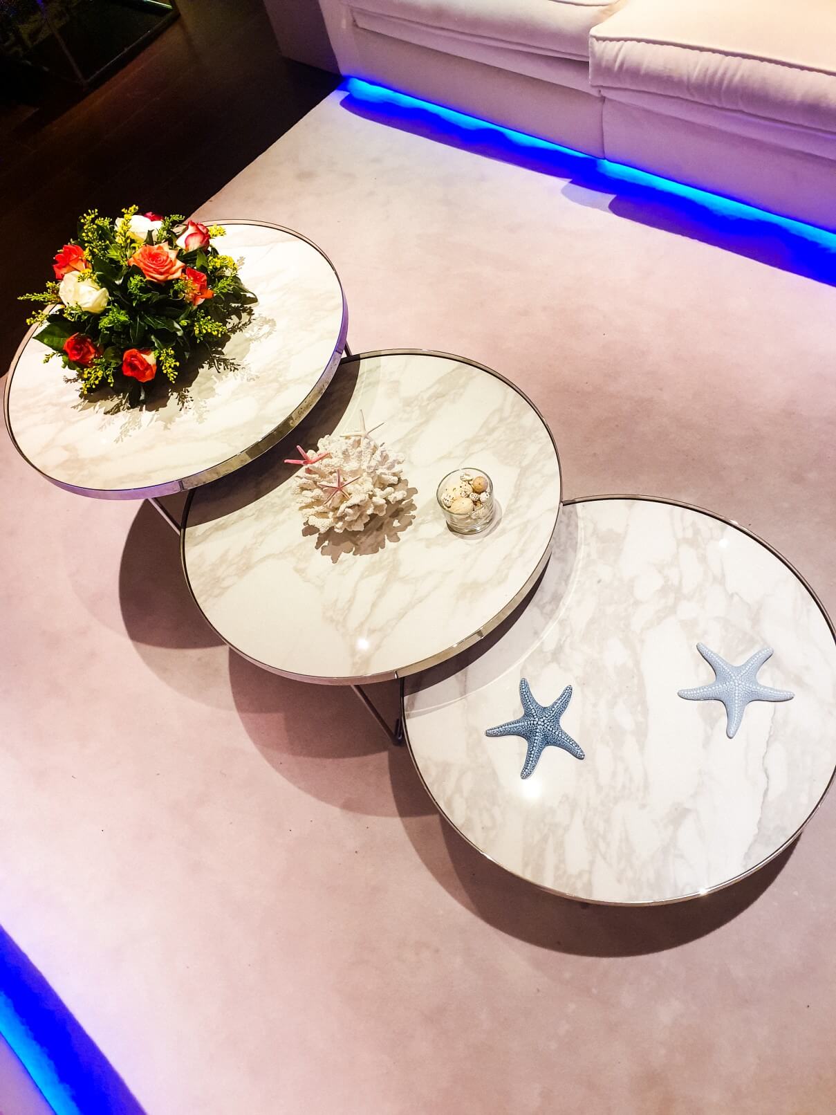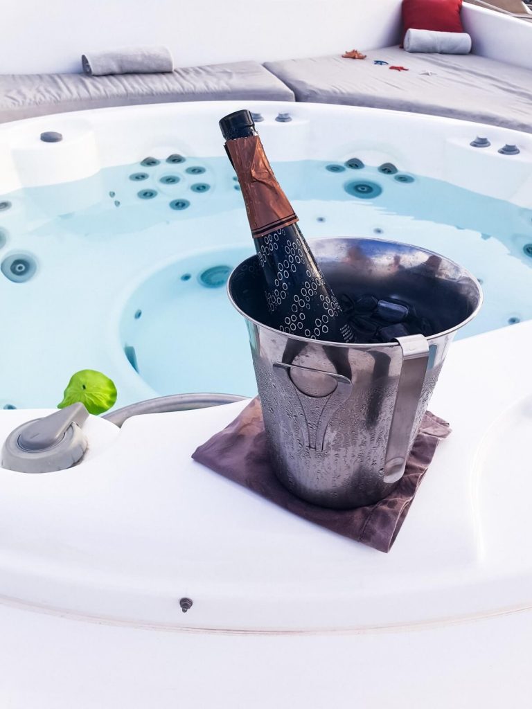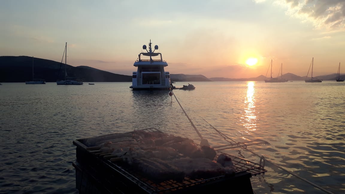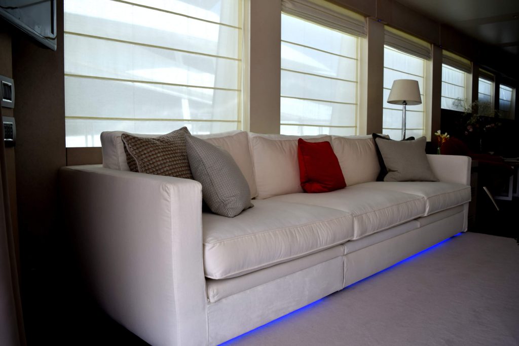 Aurora's outdoor areas are surprisingly spacious for relaxing. In the bow there is a jacuzzi surrounded by sunbathing cushions and bench. On the flybridge there is a large table for 10, which drops down to convert to a wide sunbathing area.