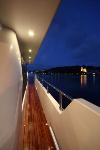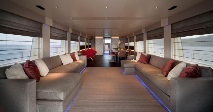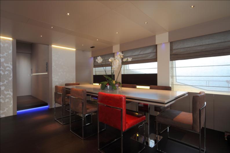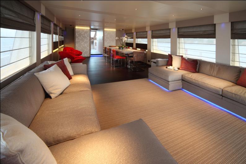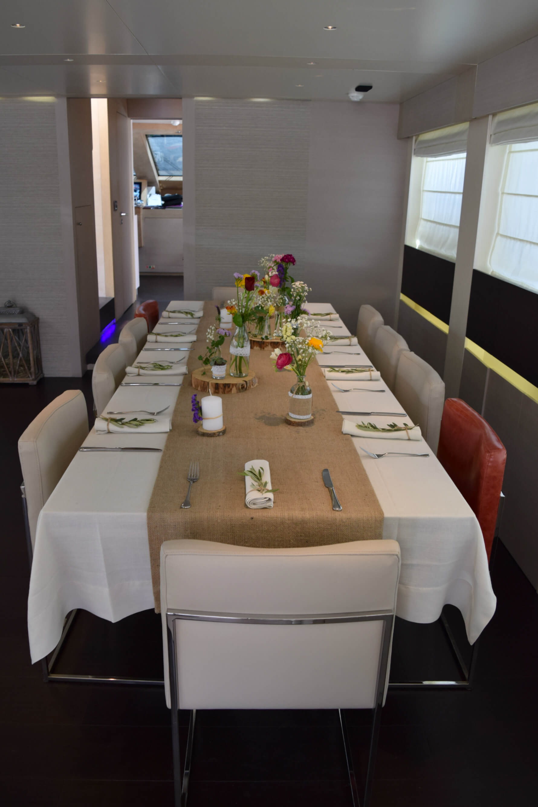 Aurora's main deck hosts the main salon, the dining area, the galley and the wheelhouse.